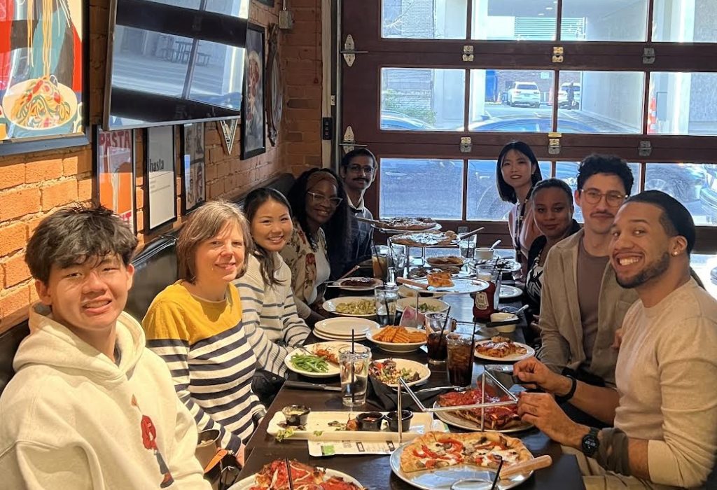 Image: From left, back to front: Sohaib Ali (Cohort 2 – U-M Dearborn – and part of the third-place winning team of the pitch competition; Lapree Jackson (Cohort 3 – EMU); Sydney Shimabukuro (Cohort 2 – U-M Ann Arbor); Amy Gillett (WDI), Matthew Sugiyama (Cohort 3 – U-M Ann Arbor).